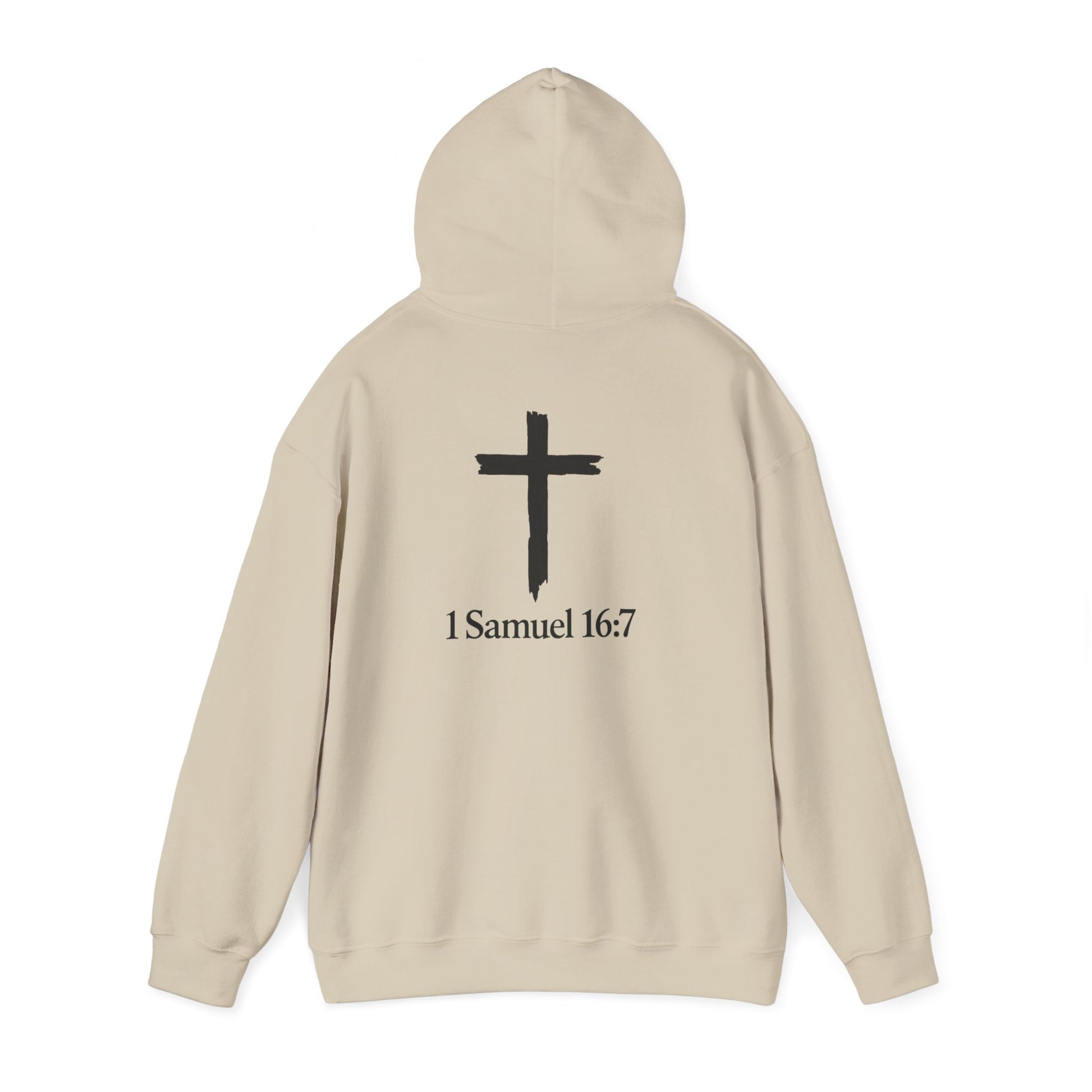 A soft, mid-weight hoodie that speaks quietly but firmly. Neutral tones and minimalist typography make the message — “UNLEARN THE LIES” on the front and a simple cross with “1 Samuel 16:7” on the back — feel contemplative rather than loud. The roomy kangaroo pocket and double-lined hood invite slow mornings, long walks, and conversations that start from a place of faith and reflection. It sits comfortably in everyday wear: layer it over a tee for church gatherings, wear it to a small group meet-up, or pull it on for quiet evenings of journaling and prayer. The restrained design keeps the focus on the message, creating a wearable reminder to look inward and trust what matters most.